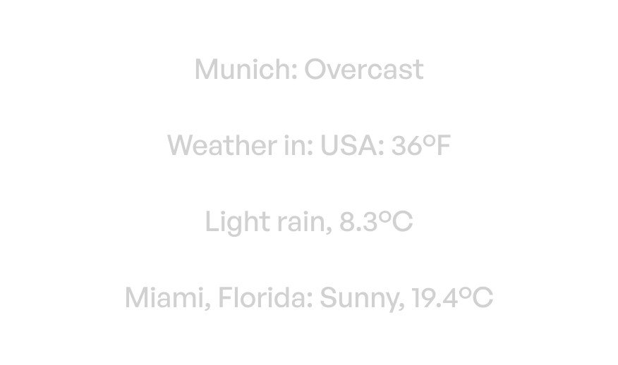 This is a fun component that shows the current weather condition and temperature for a set location. You will have to just input the country and city and the data will pull from weatherapi.com using an API. Adjust the font styling to fit your project or portfolio, the possibilities are limitless.